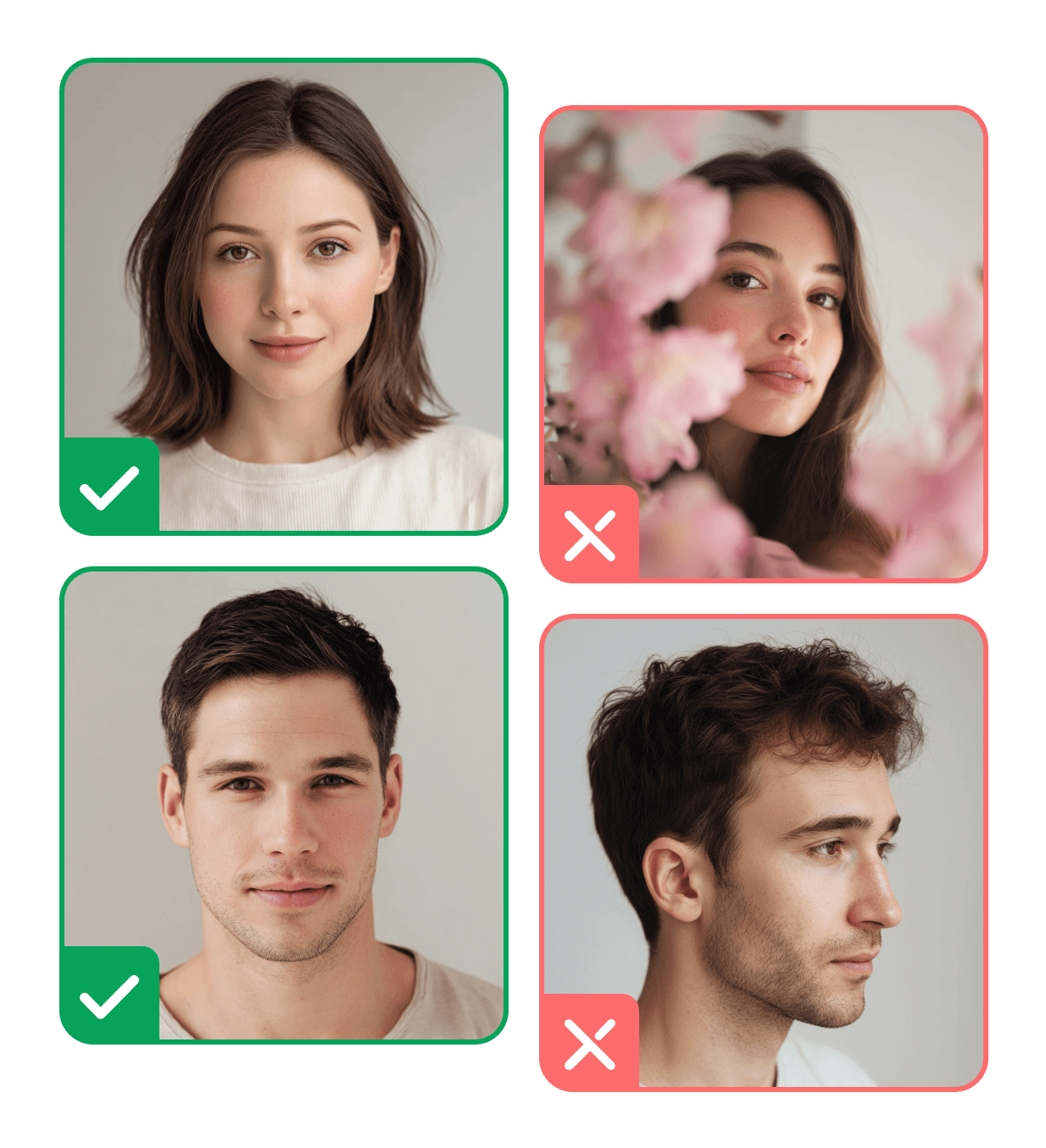 Make sure your face is fully fully fully fully visible with no hair or accessories covering key features.